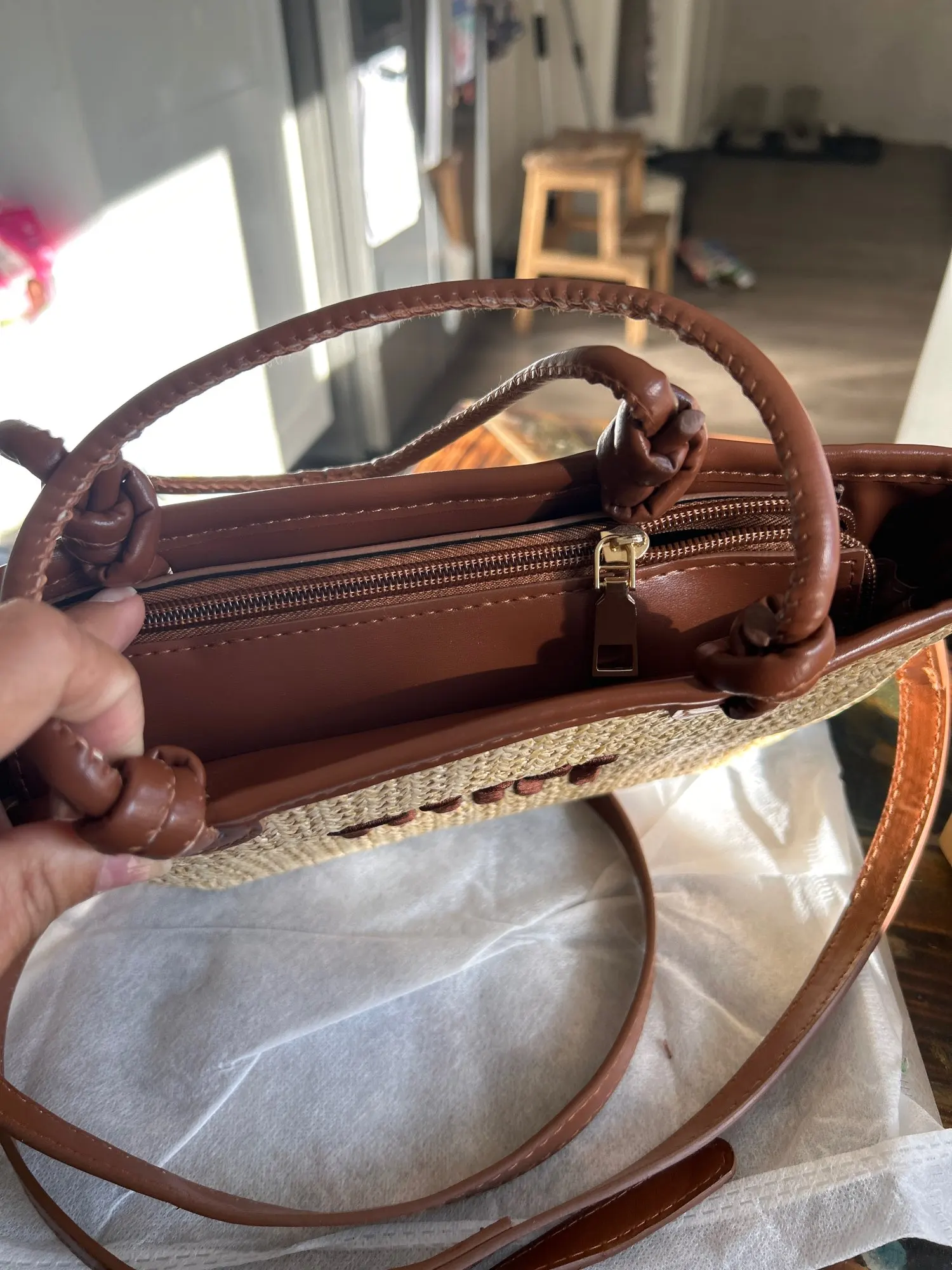 Add a touch of elegance to your wardrobe with this niche design woven handbag. Crafted with a stylish woven texture and contrasting leather details, this versatile bag can be worn as a handbag, shoulder bag, or crossbody.